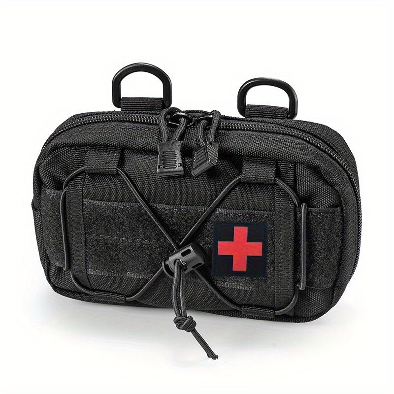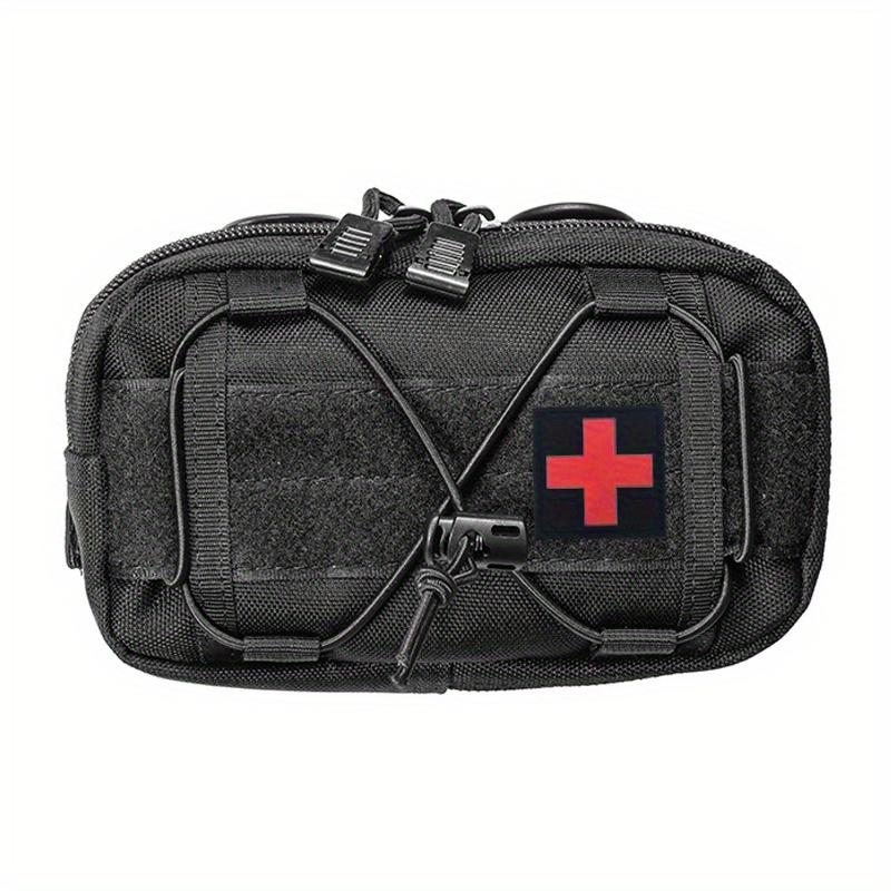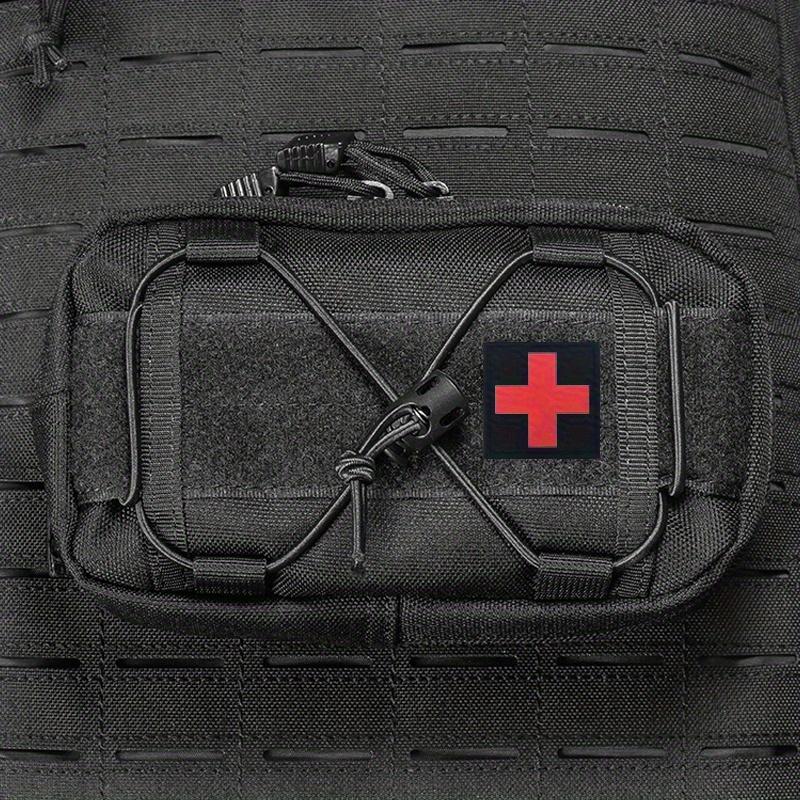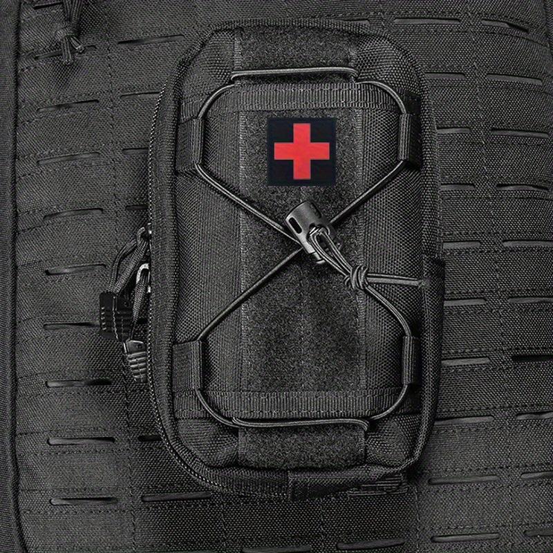 • Black Molle Horizontal Admin Pouch with Red Cross Patch - Compact Utility EDC Tool Bag, Nylon, Zipper Closure, Ideal for Camping and Sports, Camping Gear | Utility Pouch | Durable Zipper Closure, Utility Pouches