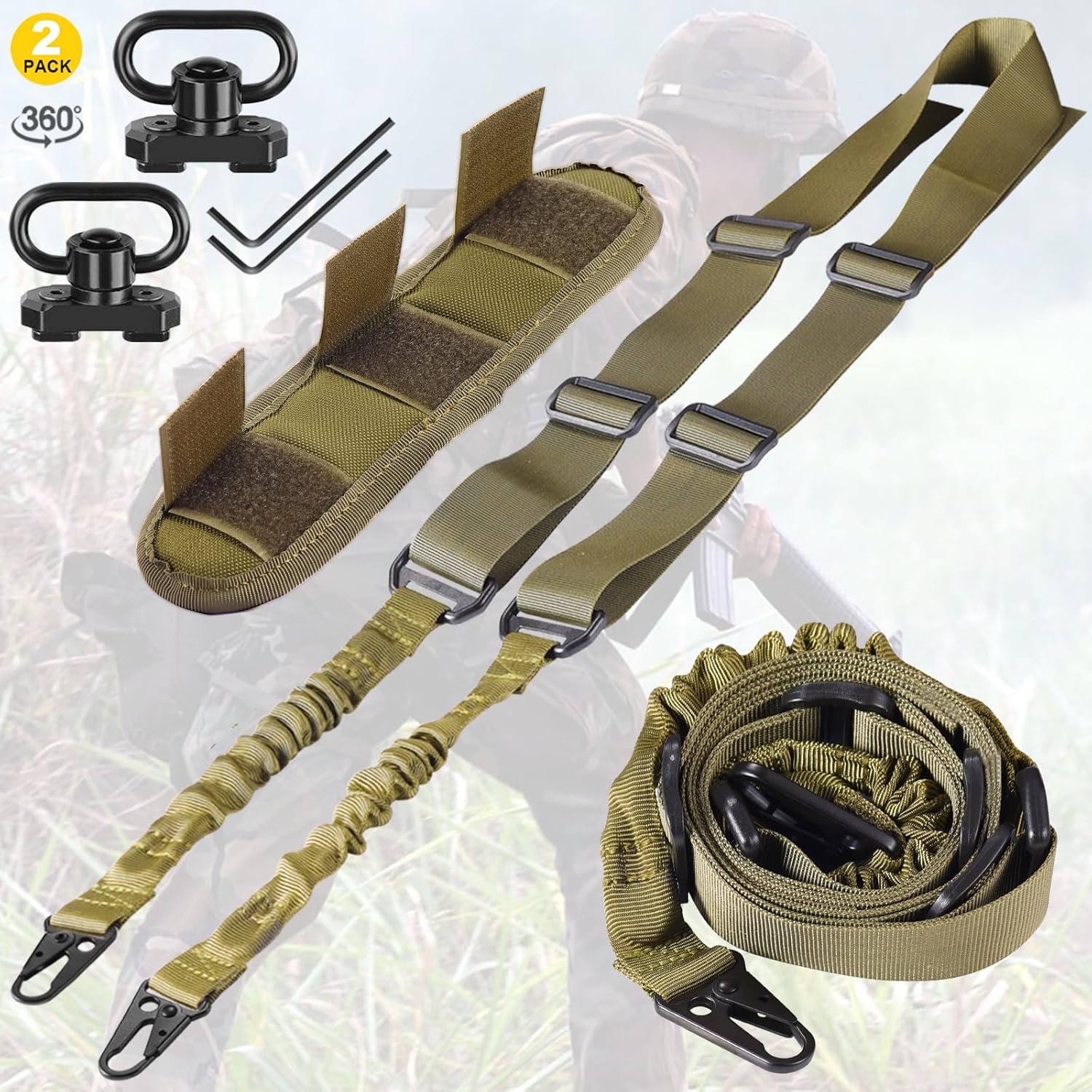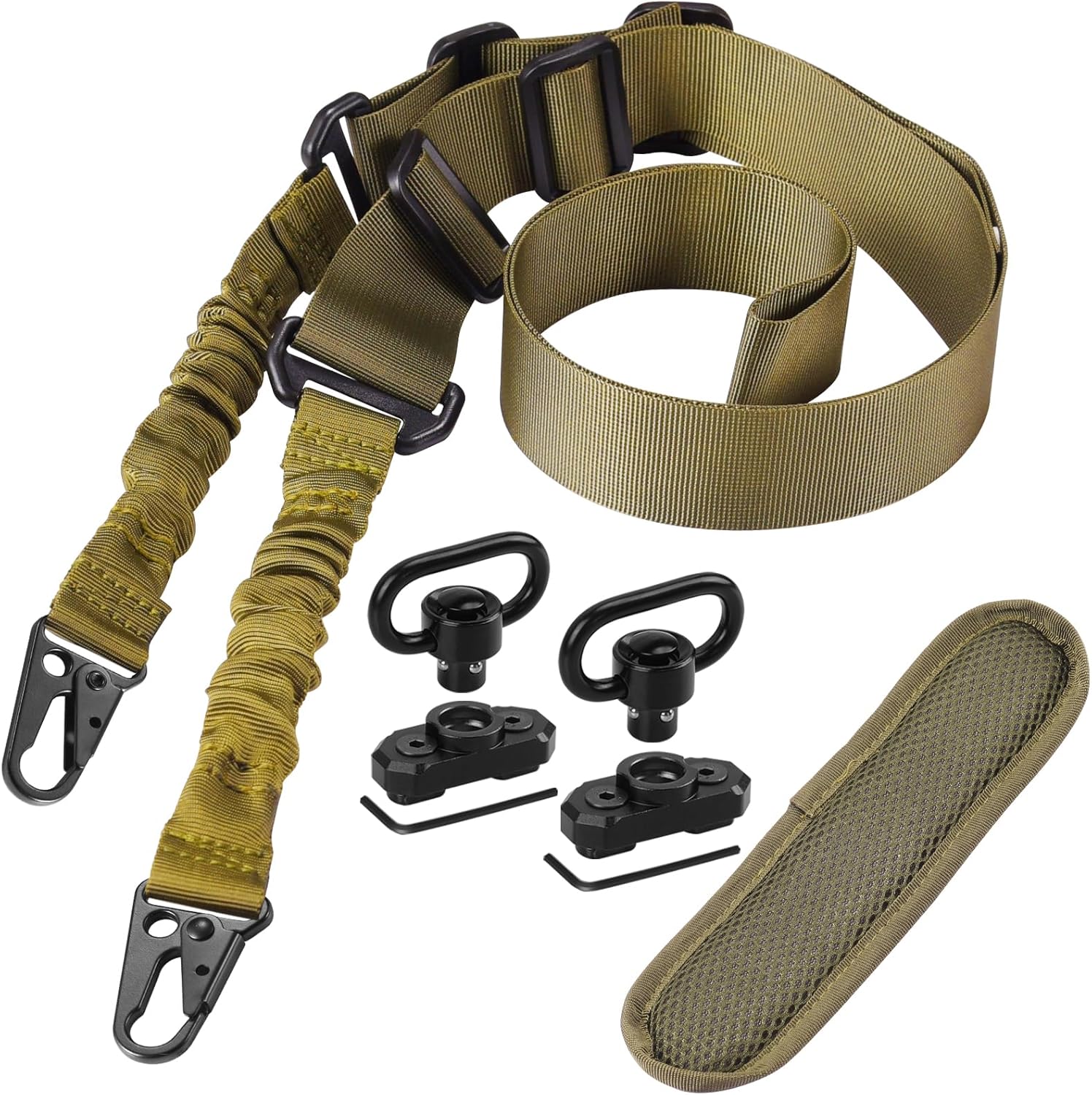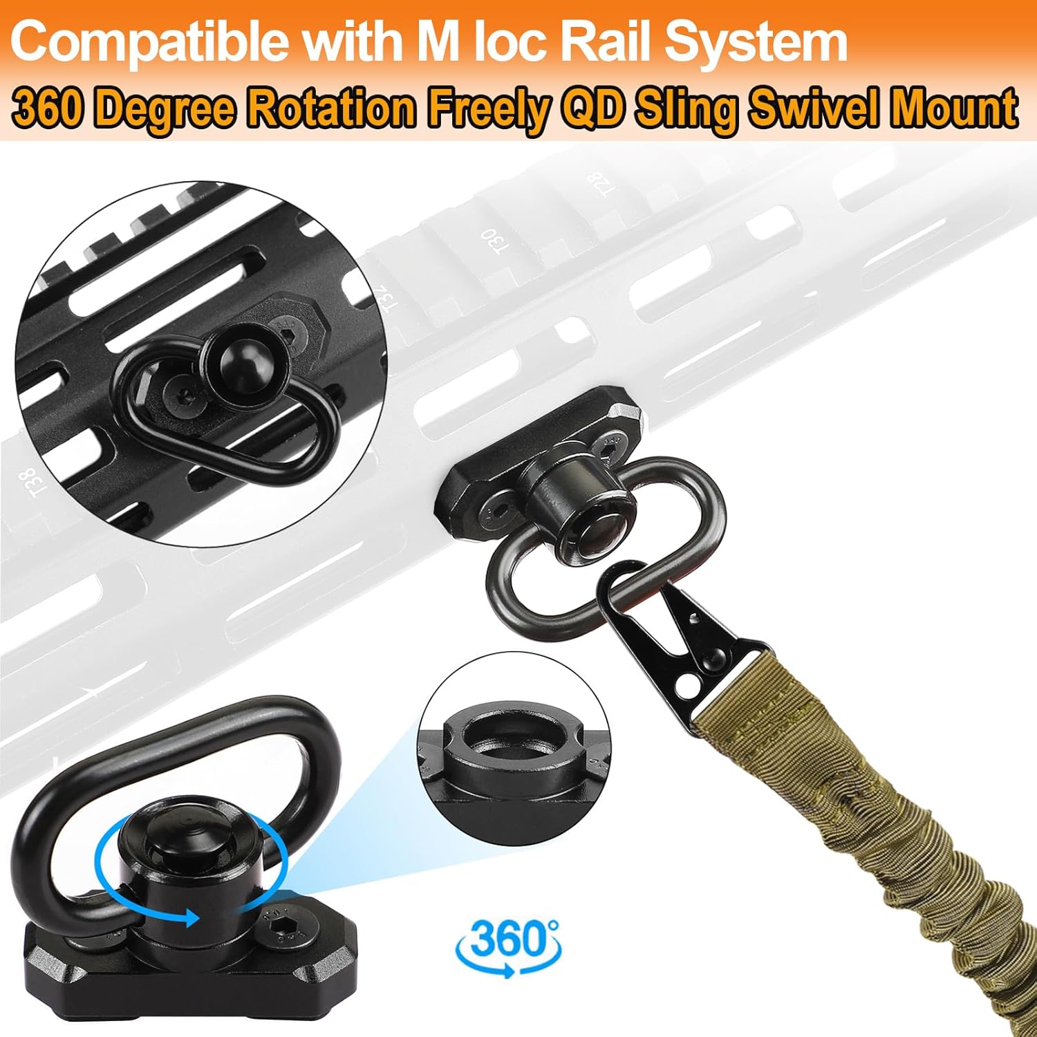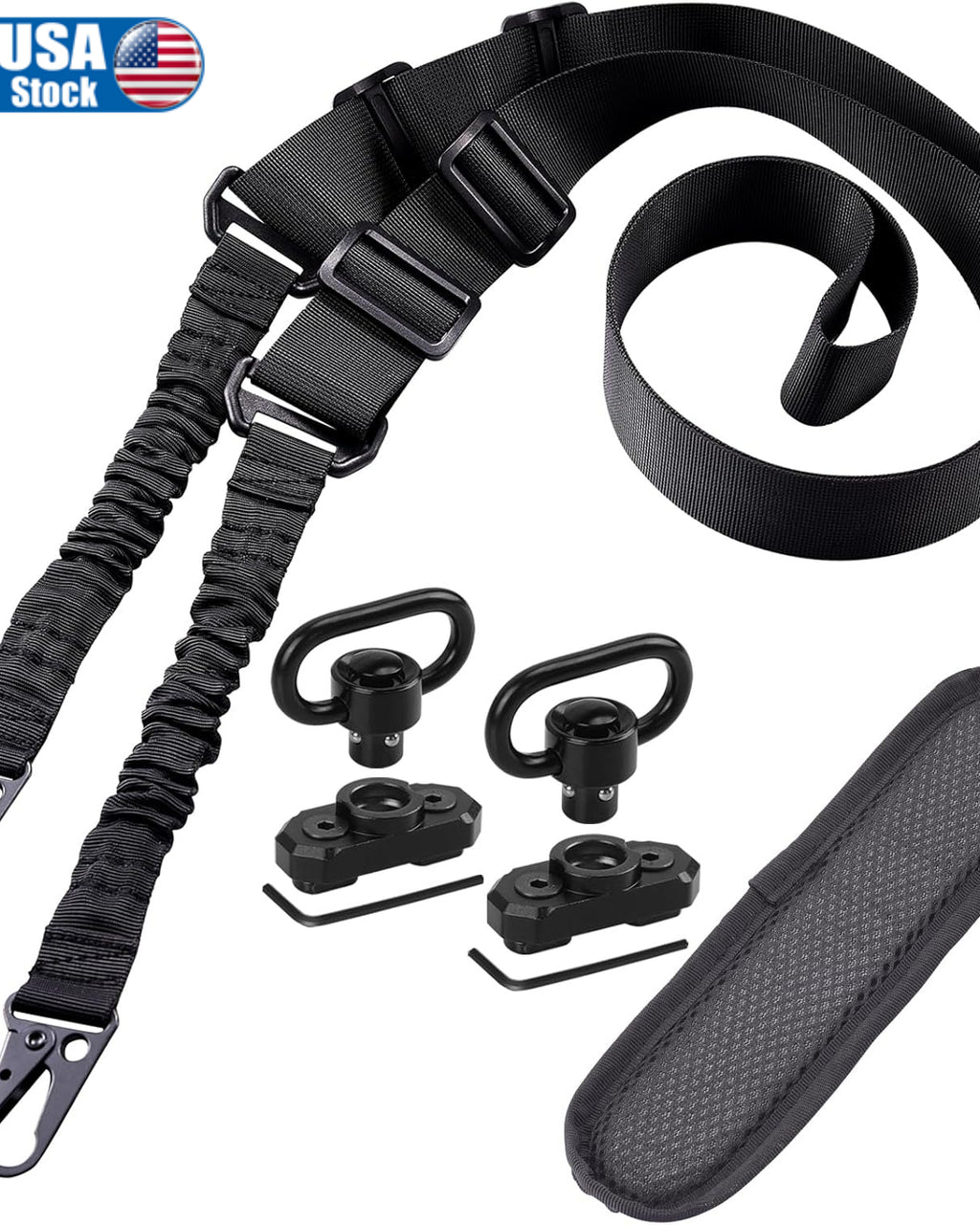 • 【LUCIERNAGA】Two Point Traditional QD Sling Kit | Extra Long Adjustable Rifle 2 Point Sling + 2 Pack 360° Rotation Black 1.25" QD Sling Swivel Mounts for Mlock + Shoulder Pad